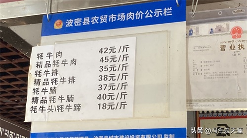 牦牛肉的价格牌