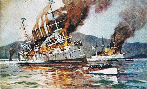 “瓦良格”号和“高丽人”号双双自沉或进行破坏,以防军舰被日军俘获。