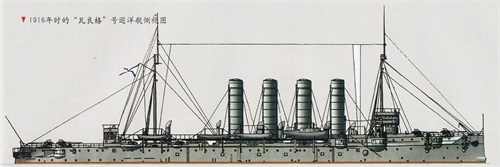 1916年时的“瓦良格”号巡洋舰側视图