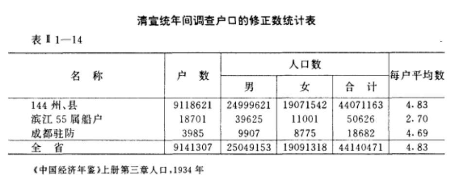 乾隆四十一年(1776年)四川总人口近1000万,60%以上是移民而来。到嘉靖十七年(1812年),升至2100万人;清宣统年间,四川人口达4410万。