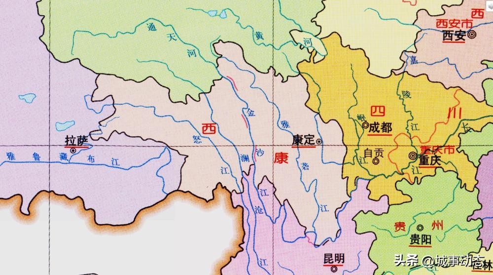 1955年,西康省被撤消后,以金沙江为界,东西两半分别并入西藏和四川,从此甘孜、凉山、攀枝花、雅安等地顺里成章变了四川),四川也变得更大了。