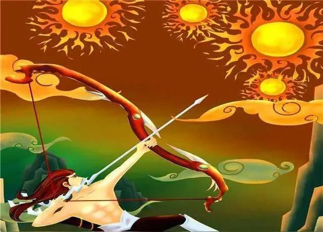 2、后羿射日:尧之时,十日并出。 焦禾稼,杀草木,民无所食。 后羿仰射之,中其九日,留一日,万民皆喜。