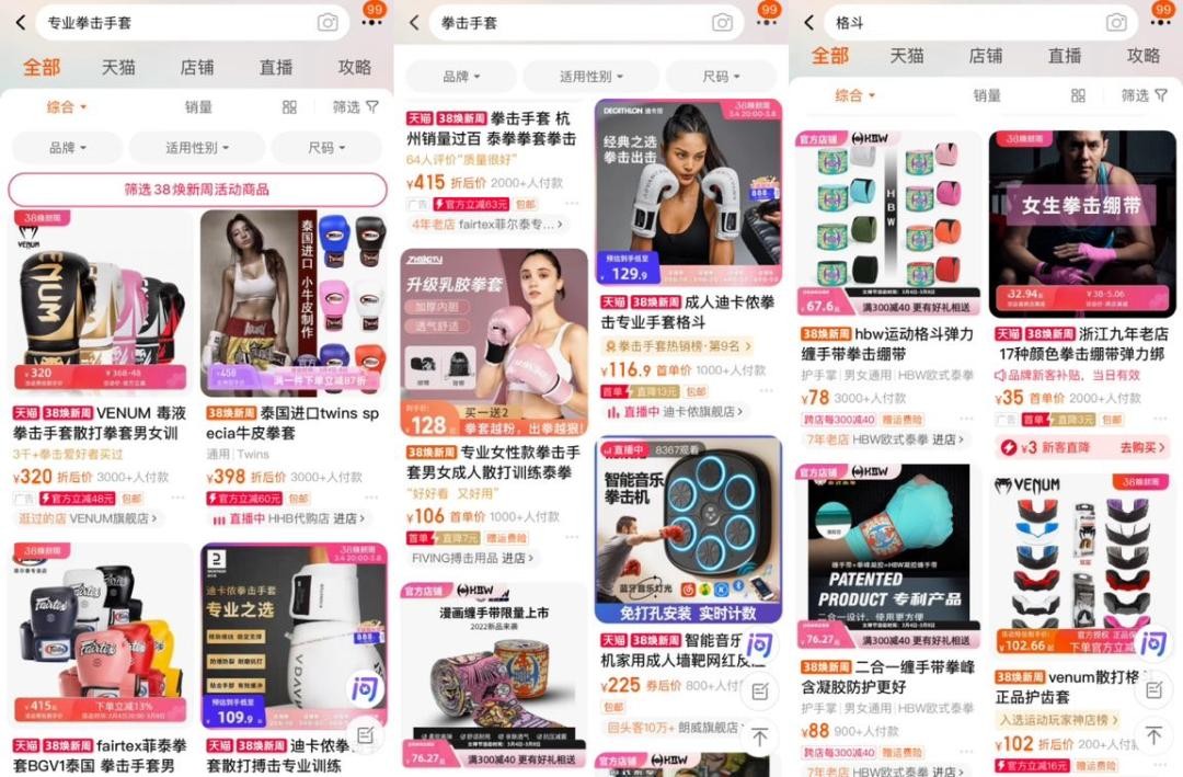 飒爽的小姐姐频繁出现在拳击、格斗、力量运动类商品页C位;