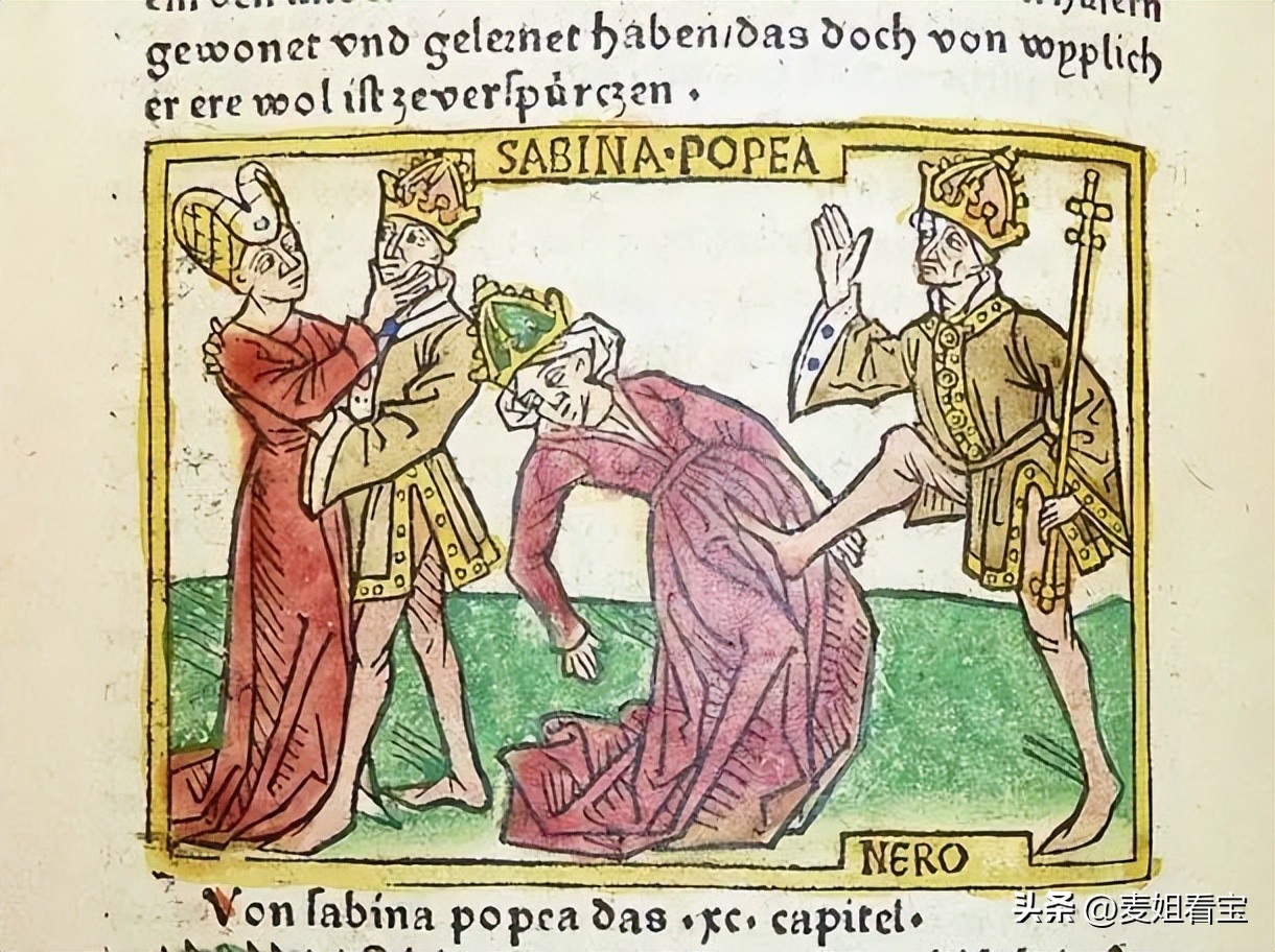 暴虐的尼禄在一次盛怒之下踢死了怀孕的波佩亚。他因失去她而悲痛欲绝,为她建造了一座豪华的坟墓。从那时起,尼禄的统治陷入混乱和叛乱,最终以自杀告终。