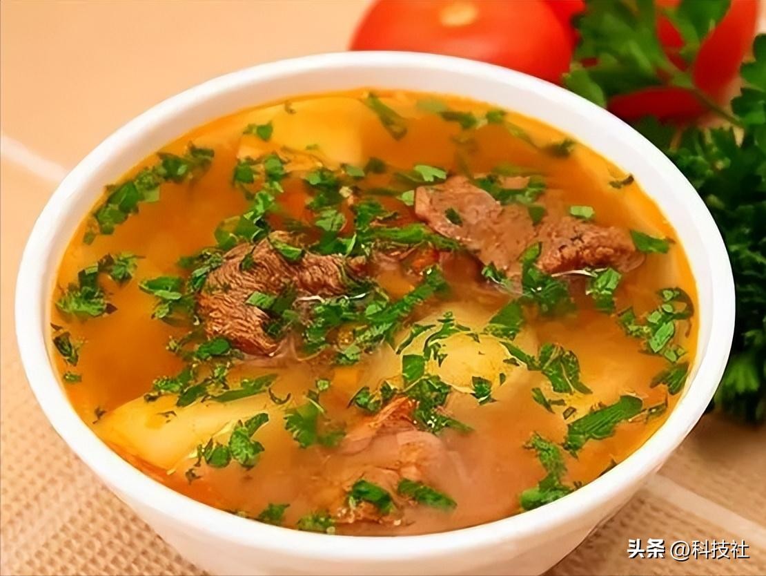 到了晚上,吃的会比较丰盛些,有肉汤和烧烤。