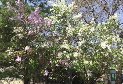 丁香树历经七十多年的风风雨雨仍然枝繁叶茂,生机盎然,几乎遮挡了整个小院的上空,散发着浓浓的丁香花味,沁人心脾。好像原来的主人正在此欣赏着美景。
