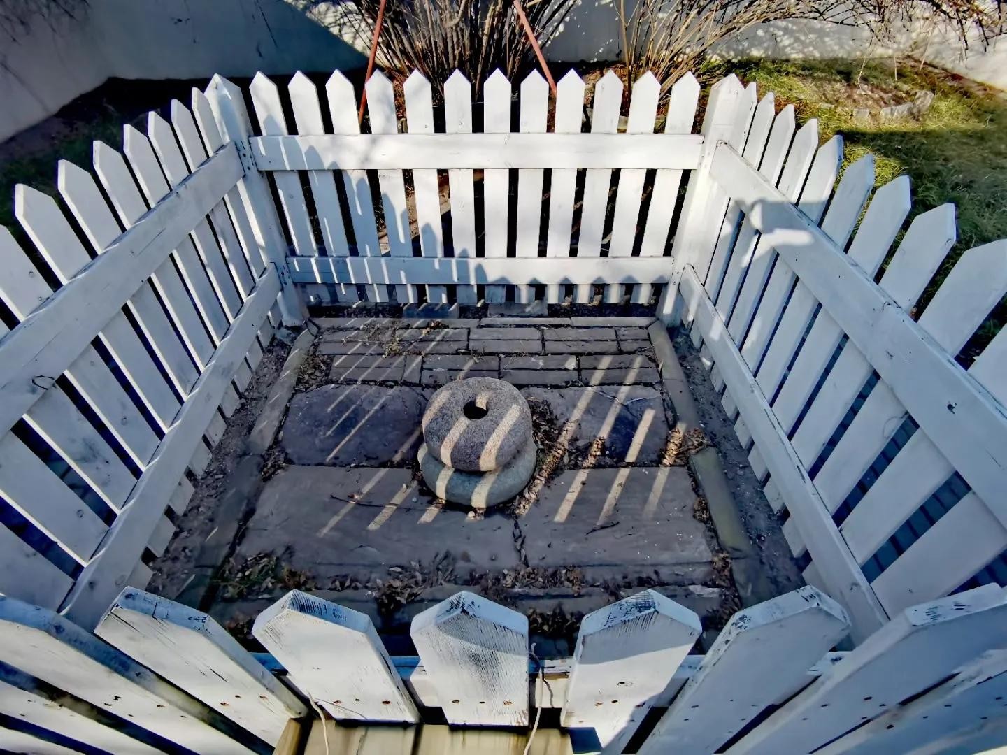后院有口井。鲁迅先生亲手栽种的刺梅。春天鲜花开放一定很美。前面白栏杆围的是什么?