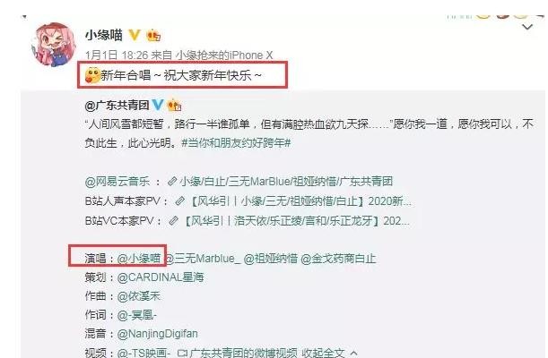 好事成双!新年第一天,小缘喵在社交平台再度向大伙宣布一个好消息:大家新年快乐,我很荣幸能受广东共青团邀请献唱新年歌曲《华风引》!能受邀为官媒唱歌,这不仅是官媒对小缘喵的唱功和实力的认可,也是对他对抗病魔不屈不挠的肯定。大毛粉看到小缘喵越来越好,可高兴坏了!