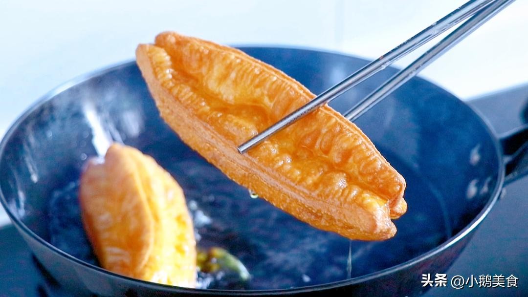 刚出锅的油条金黄酥脆,个个空心,超级好吃。放凉了也不硬,柔软筋道,也特别美味,做法特别简单,喜欢的话收藏起来试试吧!