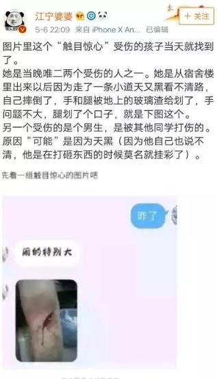 在事件发生后近10天时间里,一张从空中俯拍的一名女生倒地的图片因视觉冲击力强而被疯转。配合着图片传播的还有这样的文字“一女生被学校活活打死”“保安持枪与学生发生冲突”……