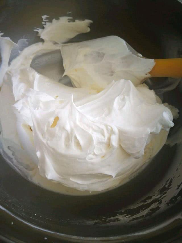 5. 这就是第6次搅打的样子,这个时候已经形成淡奶油的状态了,味道真的不错,而且整个纹路完全可以进行造型没有任何问题。