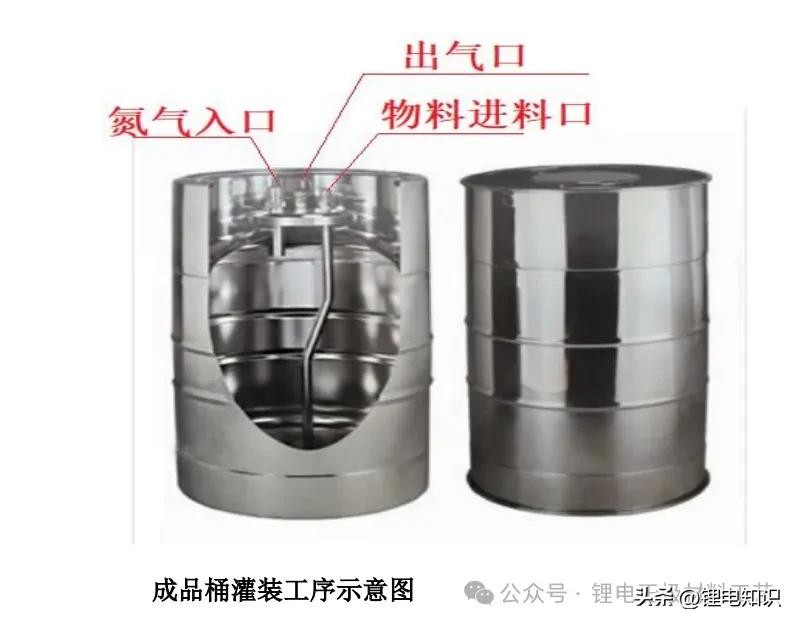 ②经过计量装置投加物料:固态锂盐六氟磷酸锂(LiPF6)通过自动翻转车计量装置计量后翻转 LiPF6桶,LiPF6桶球阀和调配釜接口球阀密封连接后,打开球阀开关后投料进调配釜,当 LiPF6投料不顺利时,LiPF6桶气相口接入氮气使料顺利加入调配釜中,整个过程 LiPF6不与空气接触。