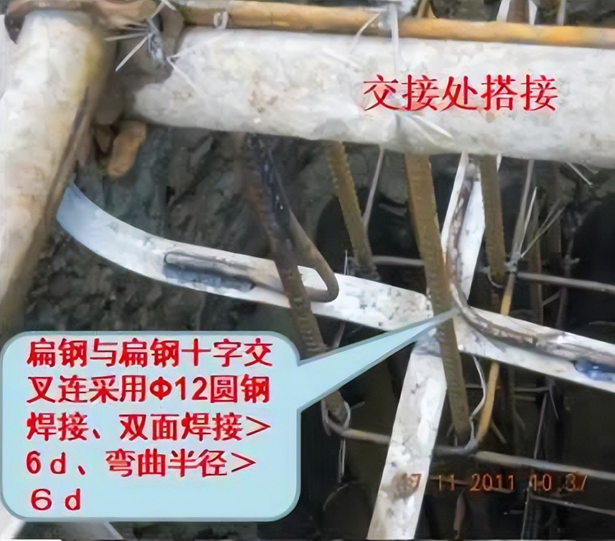 3、圆钢与圆钢搭接为圆钢直径的6倍,双面施焊;
