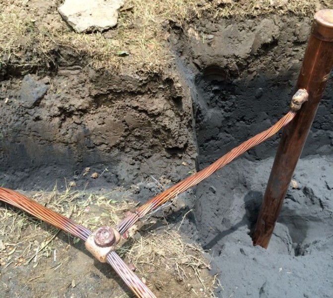 2、接地极就是与大地充分接触,实现与大地连接的电极,在电气工程中接地极是用多条25M长,45X45mm镀锌角钢,钉于800mm深的沟底,再用引出线引出。