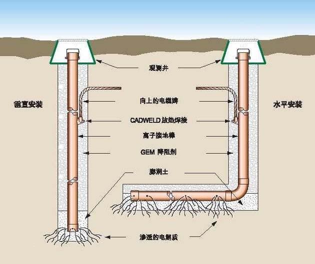 接地装置顶面埋设深度不应小于0.7M,埋设长度不小于2.5M,垂直接地极间距间距不应小于5m (根据当地防雷办要求)