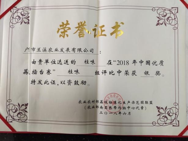 “桂味”荣誉证书