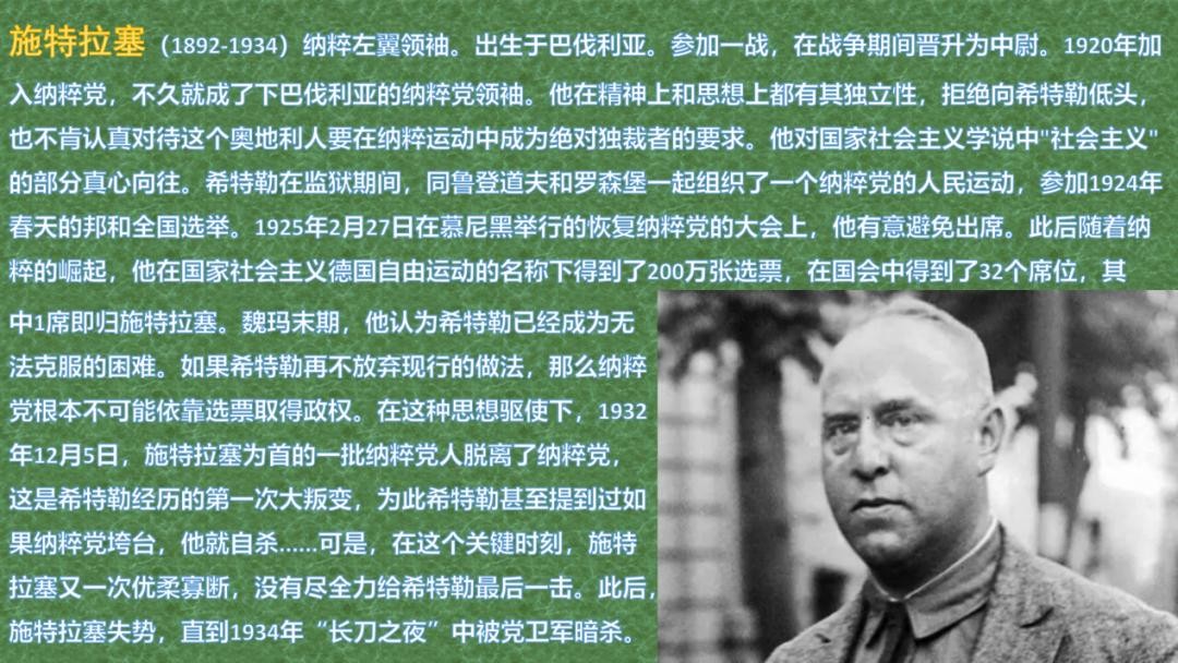 希特勒等人正打算看施莱切尔笑话时,没想到对方居然挖起了自己的墙角。原来,施莱切尔之前跟兴登堡承诺得到国会半数支持的话并非空穴来风,他虽然失去了帕彭一派的支持,却和掌管纳粹内部人事和党务,被视为党内二号人物的施特拉塞暗中结成同盟,后者有纳粹内部几十名国会议员的支持。