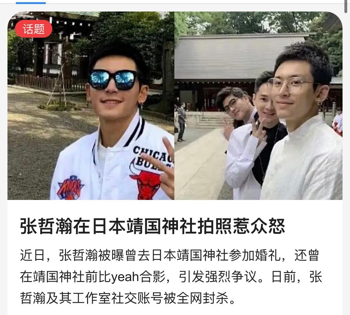 不然也不会有张哲瀚参拜靖国神社一事了。