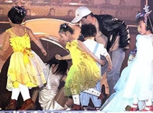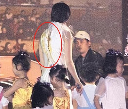 屎黄色液体还在赵薇的洁白衣裙上挂着,能看出来赵薇在台上狼狈至极。