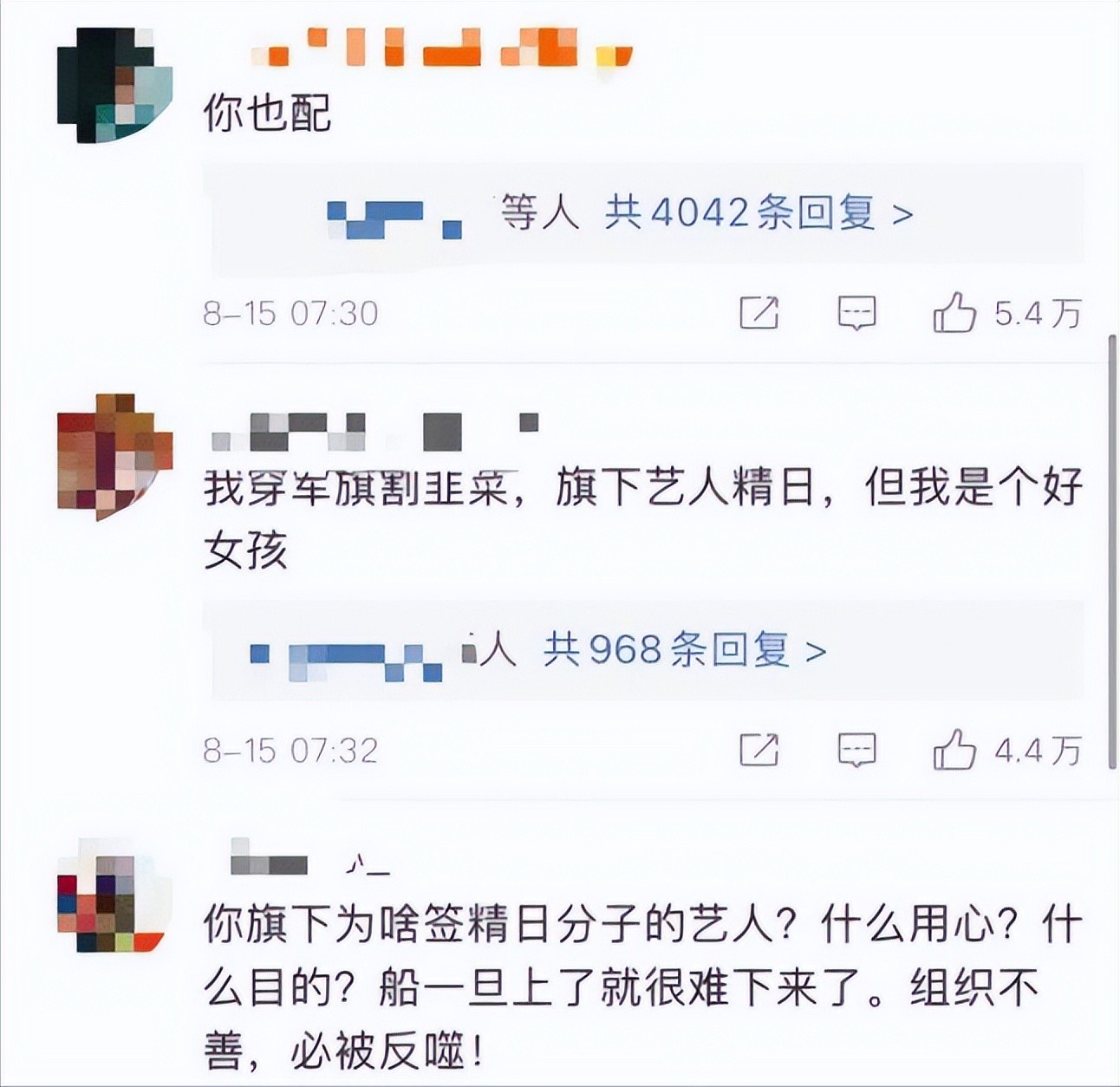 无数网友到赵薇的微博下指责、嘲讽她:自己精日、连签的艺人都是精日的。