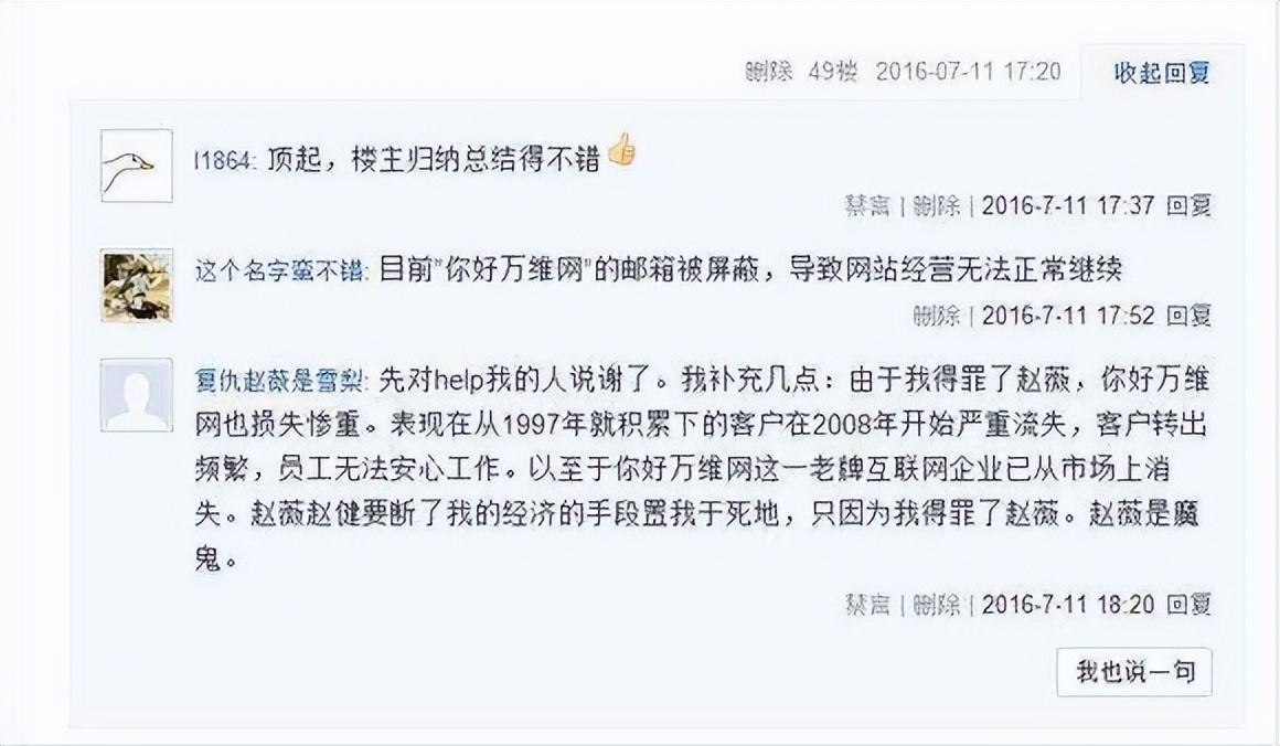 也可能是万惠拒绝了赵薇想要收购其“万维网”的建议,才导致了赵薇极其疯狂的报复行为。