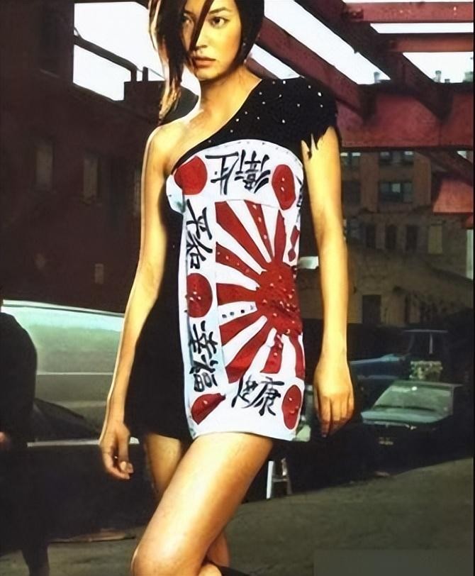 原因无他,问题就出在了这一身显眼的日本军旗裙子上。