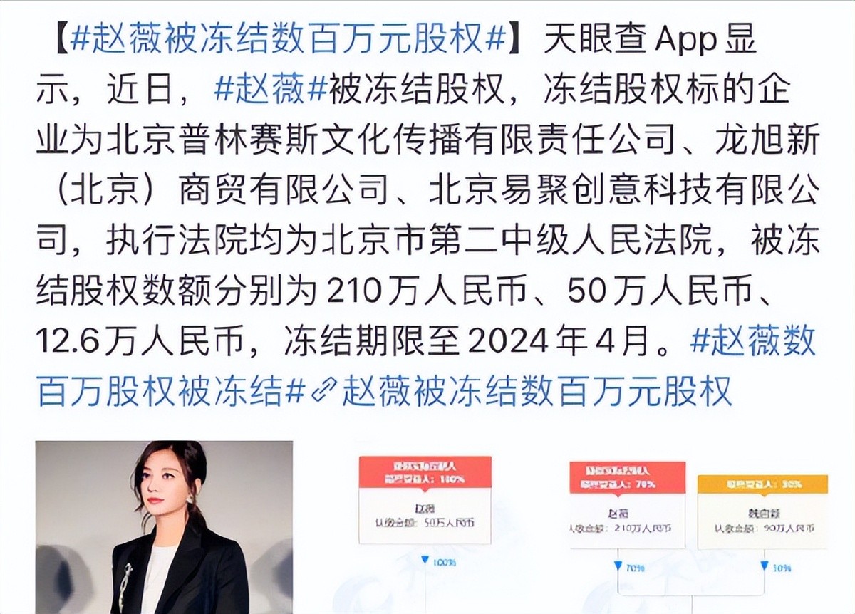 但也仅仅被冻结了百万股权,之后不了了之,赵薇仍旧在娱乐圈混得风生水起。