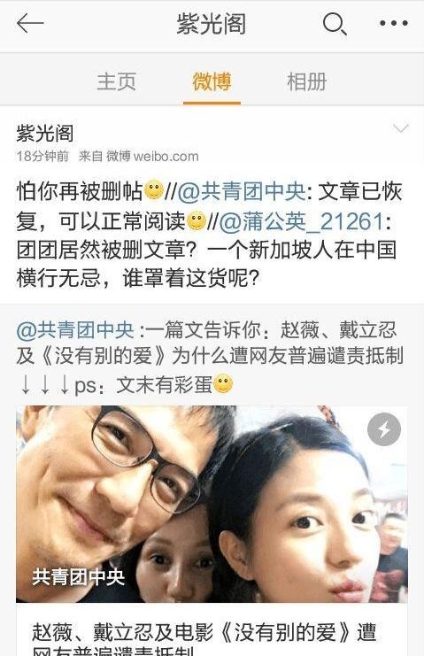 甚至连官媒紫光阁发布的相关文章也被赵薇给控制删除……