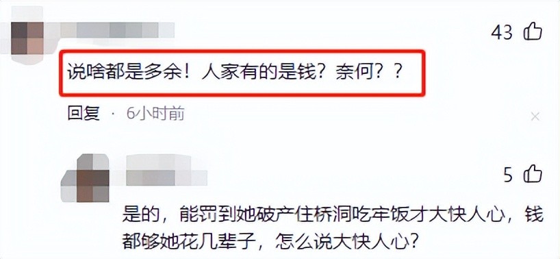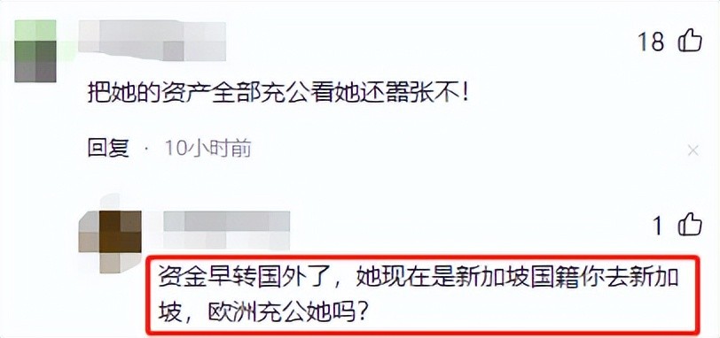 有网友直言应该将她的财产充公。