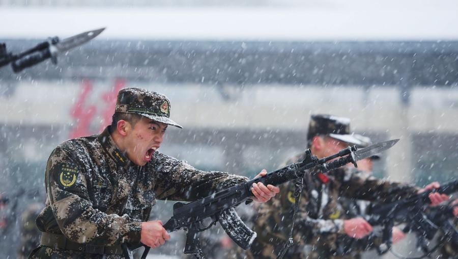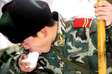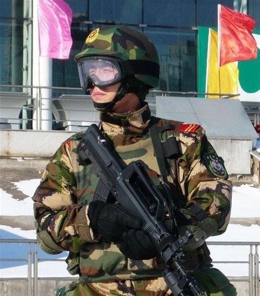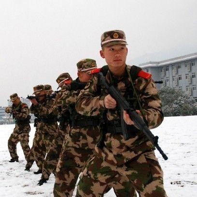 ▲身着07式冬迷彩的武警战士