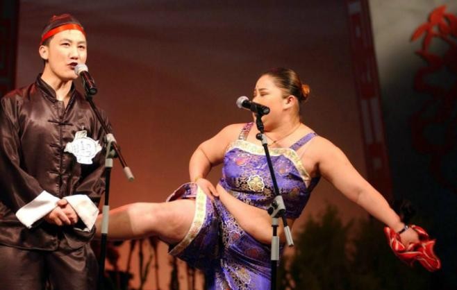 加上两个人体型上的巨大悬殊,“杨贵妃”加“瘦猴”自带喜感