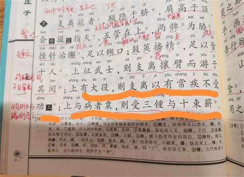 《庄子.人间世》:统治者对于民间老弱病残,免征兵役和劳役,每年还给予三钟粟和十束薪(一钟合六斛四斗)的补助。