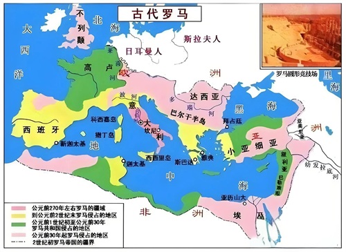 古罗马原为意大利半岛的一个小国,公元前6世纪开始扩张,统一了亚平宁半岛,经过几百年的对外战争,古罗马成为地中海的霸主和横跨欧、亚、非三洲的大帝国。公元395年,罗马帝国分为东西两部。公元476年,日耳曼的西哥特人建立的西哥特王国代替了西罗马。1453年,奥斯曼土耳其攻占君士坦丁堡,东罗马灭亡。西罗马的灭亡,标志着古罗马奴隶制生产方式的倒下,进而被封建农奴制代替。