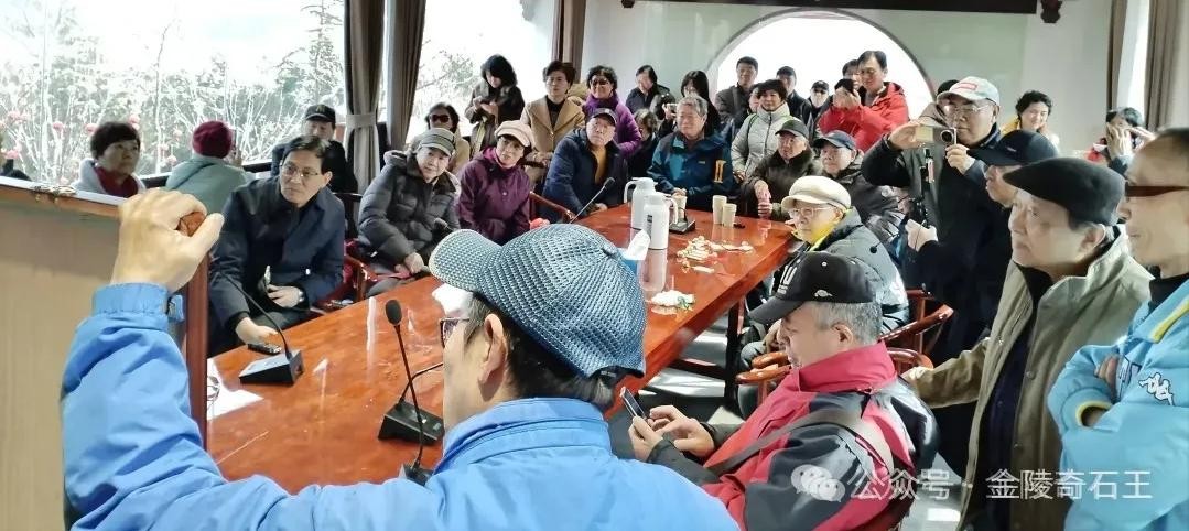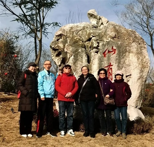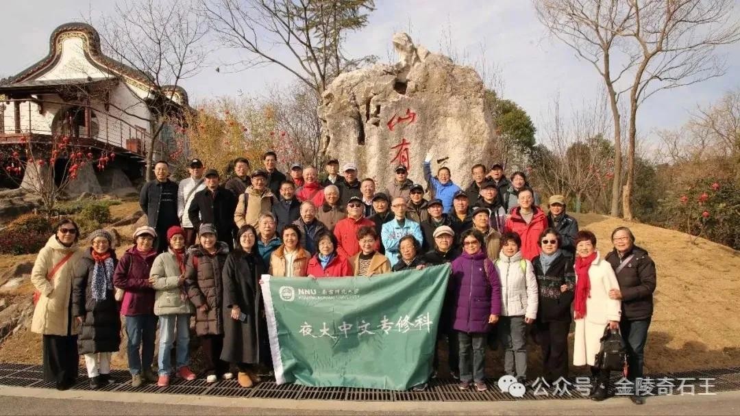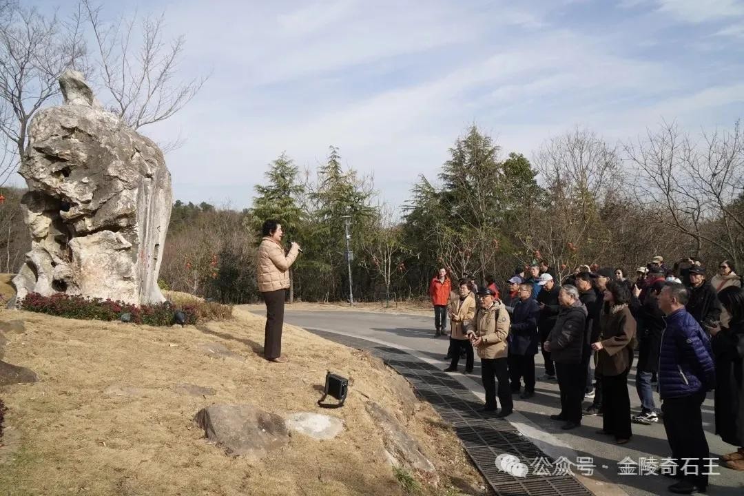 这天阳光灿烂。沐浴在冬日暖阳下的仙有台,巍然屹立,成为夜大学子们关注的焦点。我向同学们简述了这块巨型红太湖景观石的故事,校友张道康介绍了“随遇亭”和“仙有台”的筹建始末。