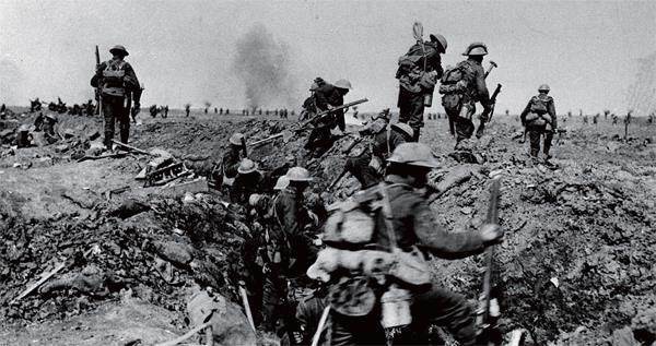 跃出战壕的英军士兵准备发起进攻