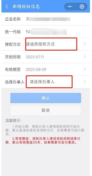第二步:执照验证,根据提示选择授权方式和授权人员即可。