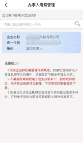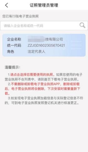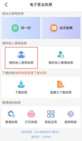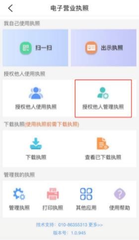 第一步:点击“授权他人管理执照”,选择需要授权的营业执照。