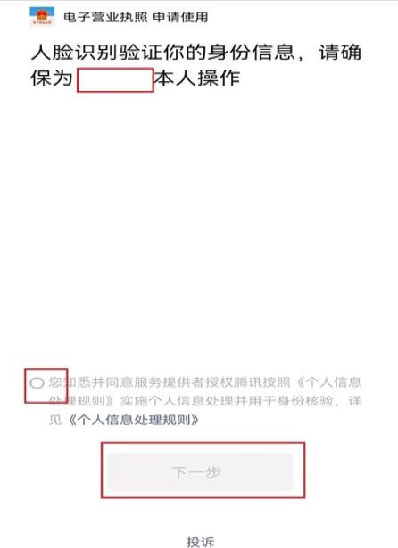 进行实名认证, 进行授权,申请使用电子营业执照,完成人脸识别。