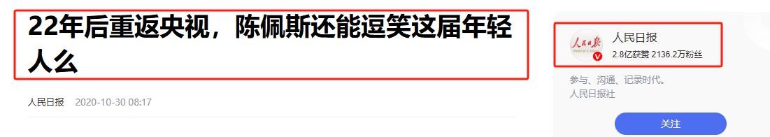 人民日报|22年后重返央视,陈佩斯还能逗笑这届年轻人么 2020.10.30