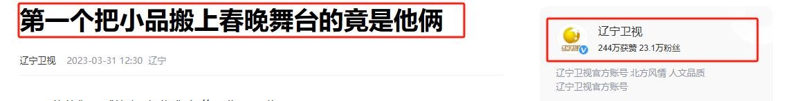 辽宁卫视|第一个把小品搬上春晚舞台的竟是他俩 2023.03.31