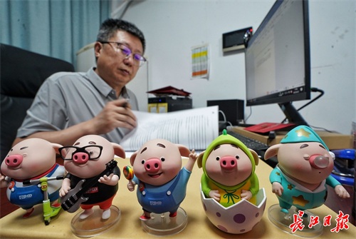 刘良教授办公桌上摆满了猪小屁的玩偶。