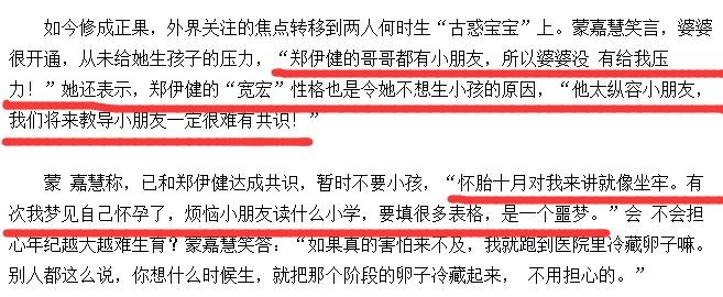丁克是他们的共同决定,这跟蒙嘉慧的原生家庭同样有关系,她怕生一个像妈妈一样任性的孩子,一辈子都要为她操心,加上郑伊健性格太温和,不太会教育孩子,所以他们就决定不生,而且郑伊健的哥哥也有孩子,满足了他父母抱孙子的愿望。
