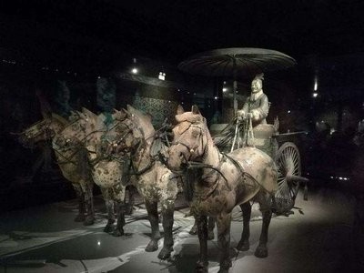 • 秦始皇帝陵1号陪葬墓考古成果:2024年1月26日公布的1号陪葬墓,因墓主等级极高,被确定为帝陵规制下的“秦帝国第一陪葬墓”,是目前已发掘的规模最大、等级最高、保存最好的秦代高等级贵族墓葬,填补了秦代高等级贵族墓葬考古的空白。墓内出土大量陶器、铜器、玉器、铁器及金银质地的小型明器,还发现了四轮独辀木车等多种用途车辆.