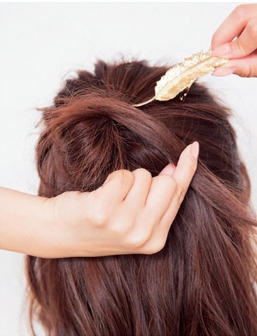 把半扎头发的发尾缠绕圈起来,用好看的发夹固定就完成半扎丸子头。