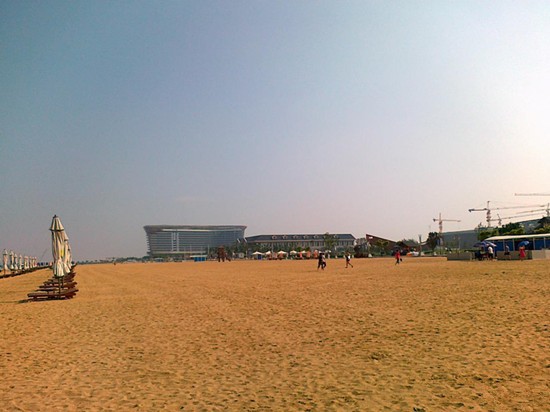 东疆湾沙滩景区系我国最大的人造沙滩景区,位于天津港东疆港区的东南部休闲旅游度假区内。西至观澜路,东临渤海,由总长约3km的防波堤环抱而成。景区沙滩南北长约2km,总面积约2.46平方公里,由入水沙滩、卵石沙滩、住宅区沙滩组成;海域总面积约2平方公里;总用沙量约为15万方,卵石用量约7万方。 景区根据实地科学规划,将沙滩设置为沙滩亲水区、沙滩游泳休闲区、水上运动休闲中心和水上休闲娱乐区。在这里无论身居楼宇的成功人士抑或天真烂漫的纯真儿童,当光着双脚,挽起裤管,都能尽情挥洒热情,感受沙滩浪漫,体验彻底放松的快乐。