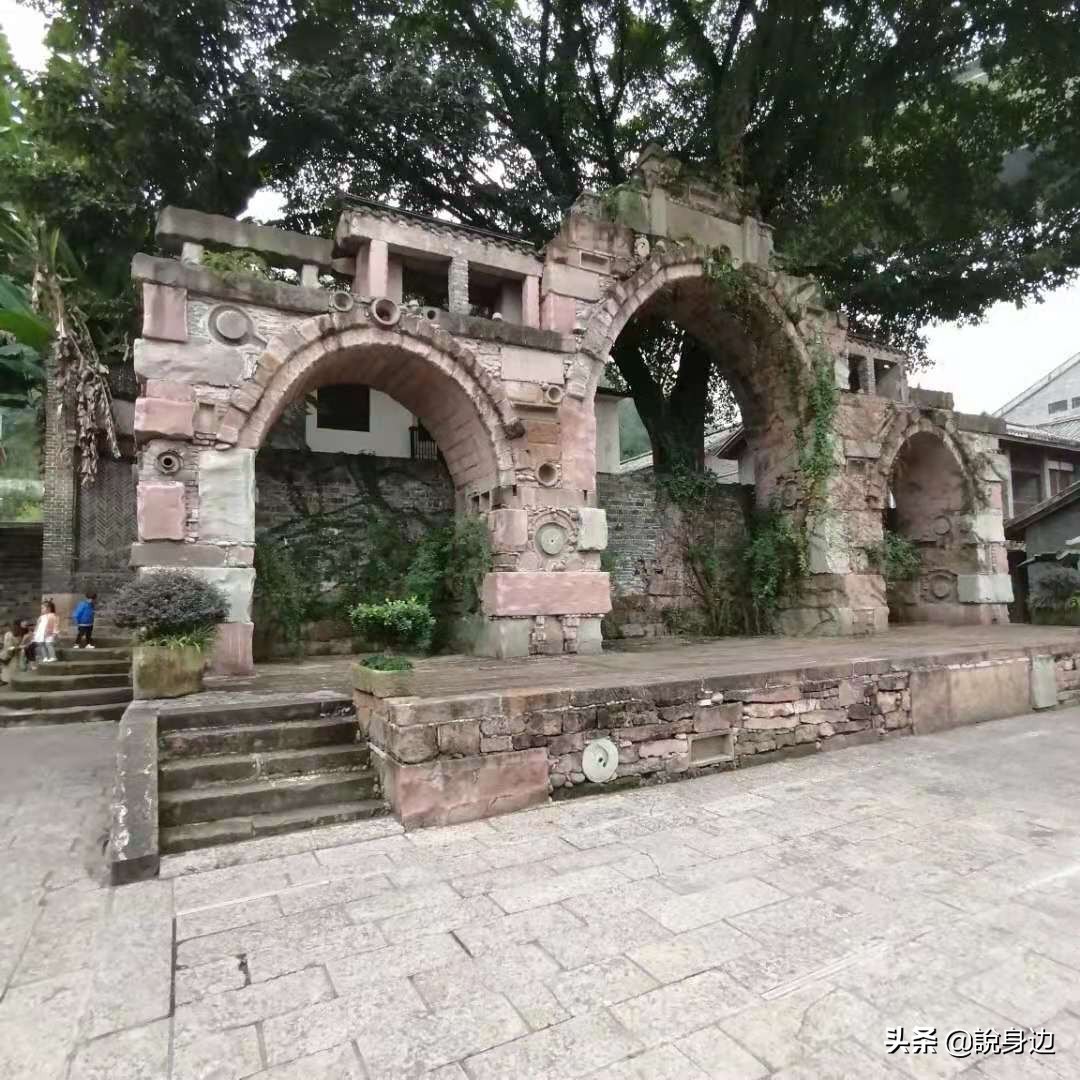 古镇后山上是义渡公园,公园北园有郭选昌雕塑馆,南园有义渡广场。