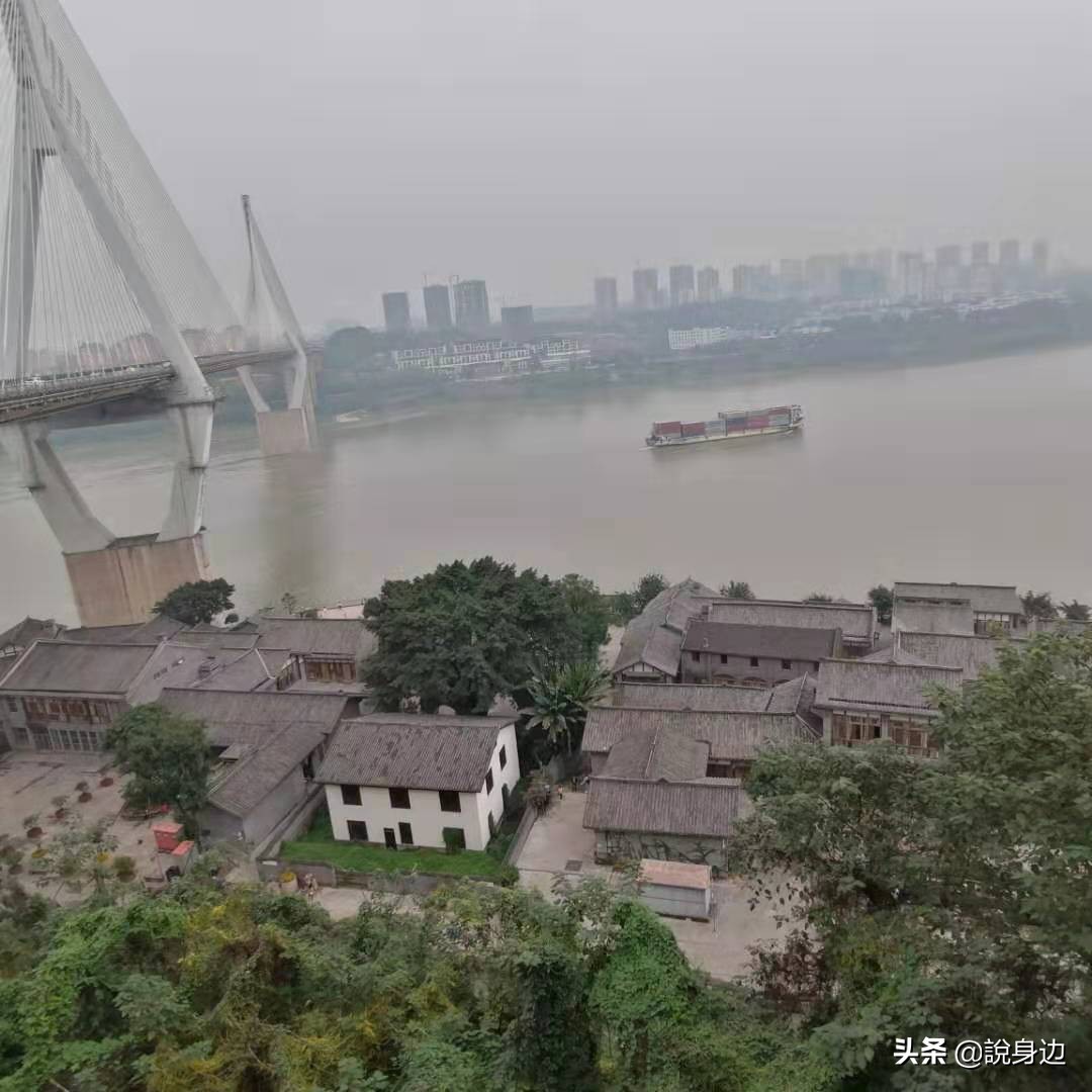 沿古镇前行,有一个公园还不算小,许多家长带着小孩正兴致勃勃地游玩,再向前走,一条羊肠小道直通江边,是休闲好去处。江面轮船伴着汽笛声慢慢驶过,江边渔夫正绕有兴致地钓鱼,头顶的马桑溪大桥雄伟屹立。