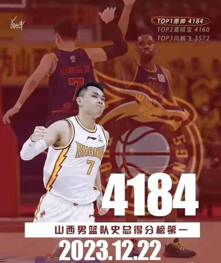 2023年,是原帅打得最好的一年,上场时间国内第三,因此也有了劳模的称谓,同时也成为队史得分王,超过了大宝。