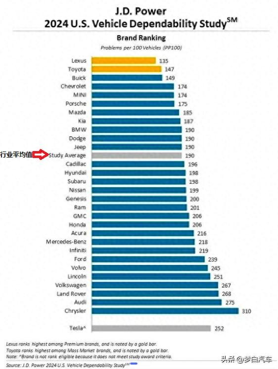 别乱买!2024年汽车质量排名:丰田重回前三,特斯拉大众令人意外