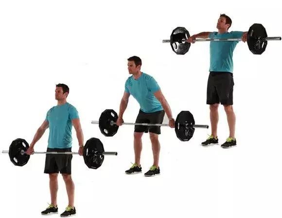 如何做:将杠铃举过头顶,双手握住的距离大约为肩宽的两倍。手臂保持完全笔直,脚与肩同宽站立。将手肘锁起来,让它们全程保持这样。耸一耸肩,尽量把肩膀的顶部靠近耳朵。停留片刻,然后返回起始位置并重复训练。
